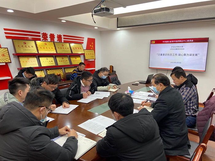 2021年2月3日,礦業公司黨支部圍繞“注重意識形態工作,凝心聚力謀發展”主題開展1月份支部活動,支部11名黨員全體到會。